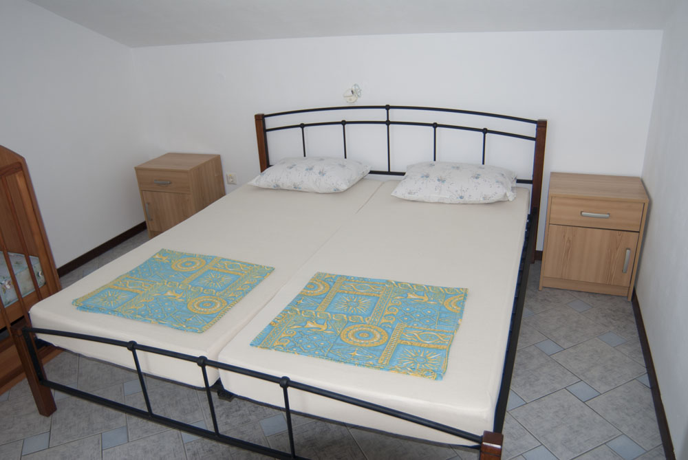 Apartma se ponaša z dvema spalnicama. V prvi spalnici se nahaja zakonska postelja, enojna postelja ter otroška posteljica, v drugi spalnici pa se nahaja zakonska postelja. V apartmaju se nahaja tudi kuhinja, jedilnica in kopalnica.